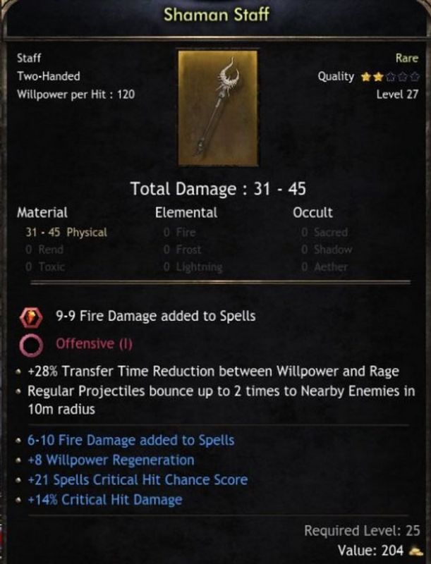 В качестве оружия маги используют Посох, а он, как известно, стреляет также снарядами. Это значит, что и урон от посоха мы тоже будем увеличивать пропорционально урону от умения. В принципе, вся ротация происходит так: спамим огненным шаром, пока не закончится энергия, а затем переключаемся на посох для генерации энергии. После того, как наберем достаточное кол-во энергии, повторяем вышеуказанные шаги.