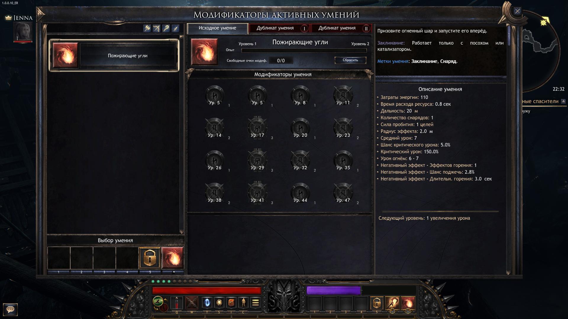 Ротация в основном строится вокруг скилла «Пожирающие угли», используя который мы можем уничтожать толпы врагов на расстоянии или вблизи. Фаербол, который выпускает это умение считается “снарядом”, а это значит, что в Калейдоскопе мы можем прокачивать урон от “снарядов”. Плюс к этому, способности повышающие урон от заклинаний помогут нам выдавать огромные цифры урона.