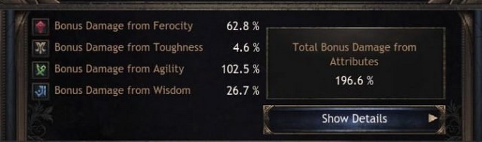 Свирепость, Проворство и Мудрость – основные хар-ки мага в Wolcen, повышающие наш урон. Свирепость – увеличивает шанс крита. Проворство – повысит скорость атаки и заклинаний, Мудрость позволяет чаще накладывать дебаффы на врагов (горение, например).