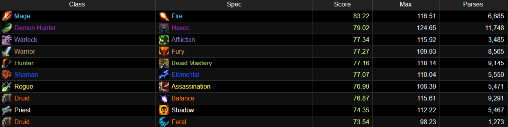 Рейтинг ДПС составлен на основе данных логов от реальных игроков в рейдах на Героической сложности. При обработке результатов от множества игроков и был составлен данный рейтинг.
