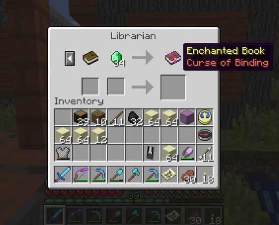 Очень полезное свойство, ведь таким образом, играя на сервере в PvP режим, вы предохраняетесь от возможности соперником использовать ваше оружие против вас. У вас есть возможность найти обновление для предмета, на котором наложено проклятье, тем же способом, что и его самого, также вы можете починить данный предмет.