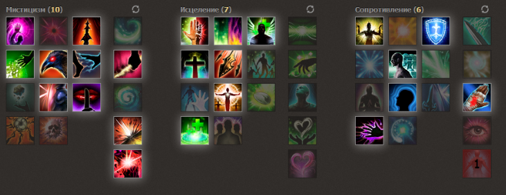 Еретик, состоящий из таких элементов, как исцеление, сопротивление и мистицизм. Мне кажется, что данный класс ориентирован в-первую очередь на несение урона, однако, в случае необходимости персонаж класса может выступить в роли хила. Многие игроки часто жертвуют уроном из мистицизма.